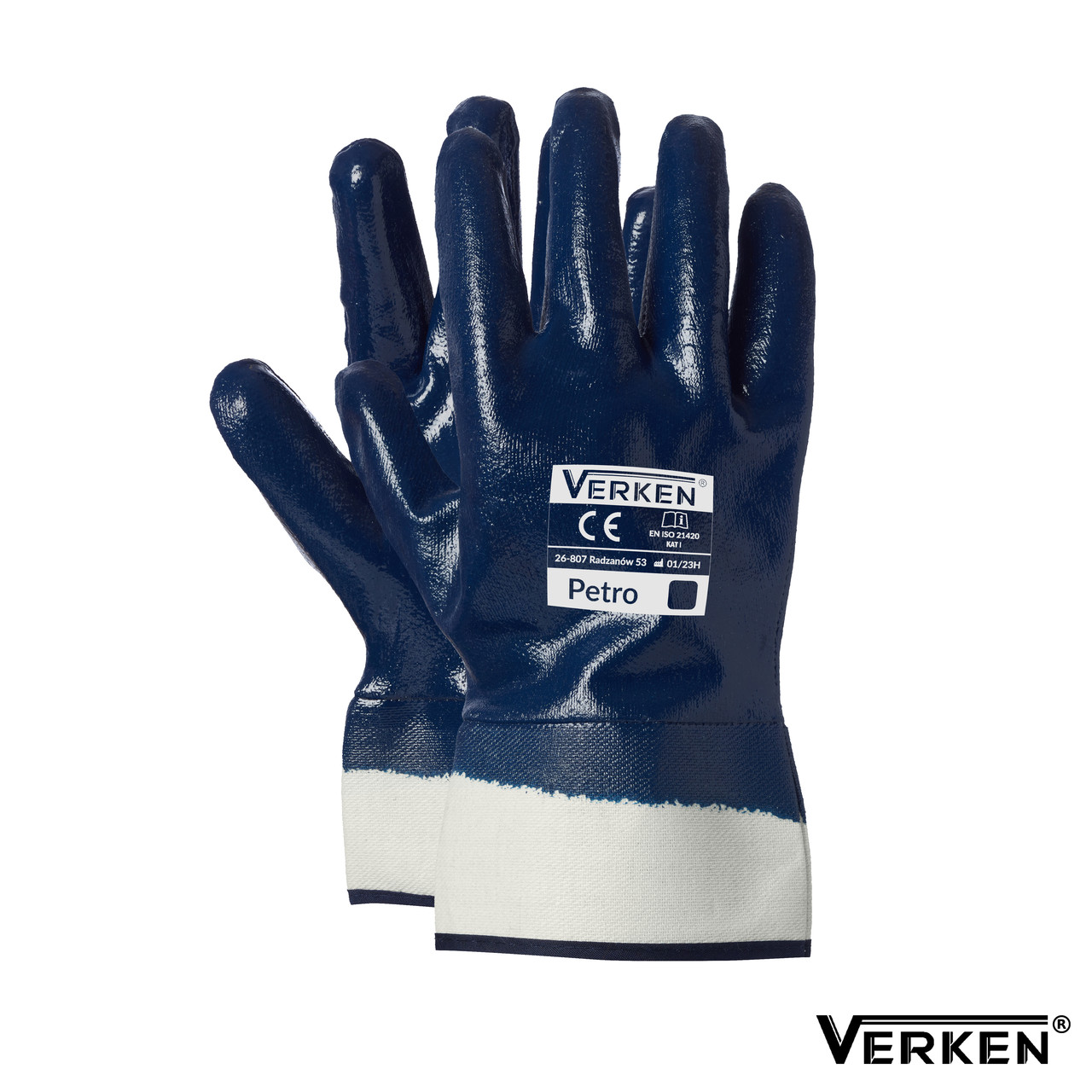 Profesjonalne rękawice wykonane z wysokiej jakości bawełny zakończone usztywnionym mankietem, powlekane w całości nitrylem